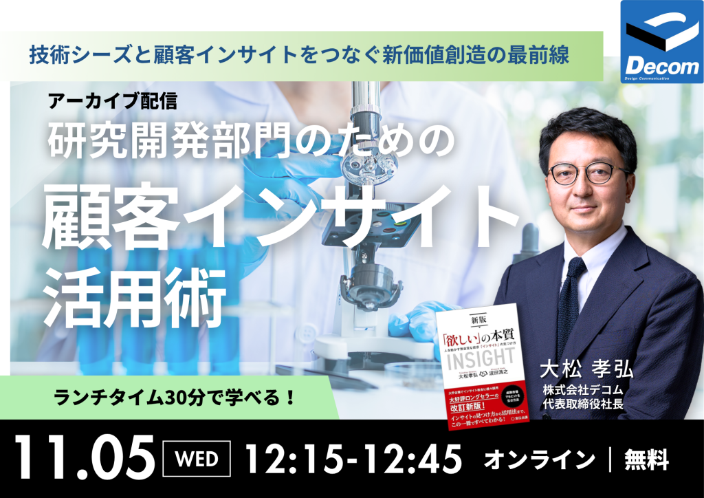 今回は『研究開発部門のための顧客インサイト活用術|技術シーズと顧客インサイトをつなぐ新価値創造の最前線』になります。