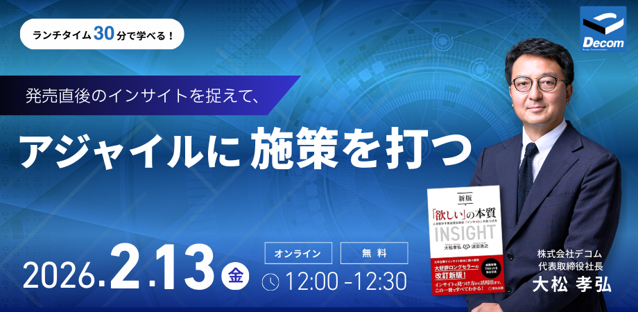 本セミナーでは、多くの新商品開発を支援してきたデコムが、発売直後の反応を「次なる一手」に変換するための思考法をお伝えします。