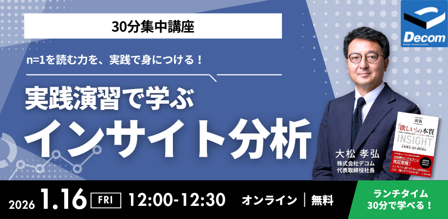 今回は【30分集中講座】『n=1を読む力を、実践で身につける!──実例演習で学ぶインサイト分析』になります。