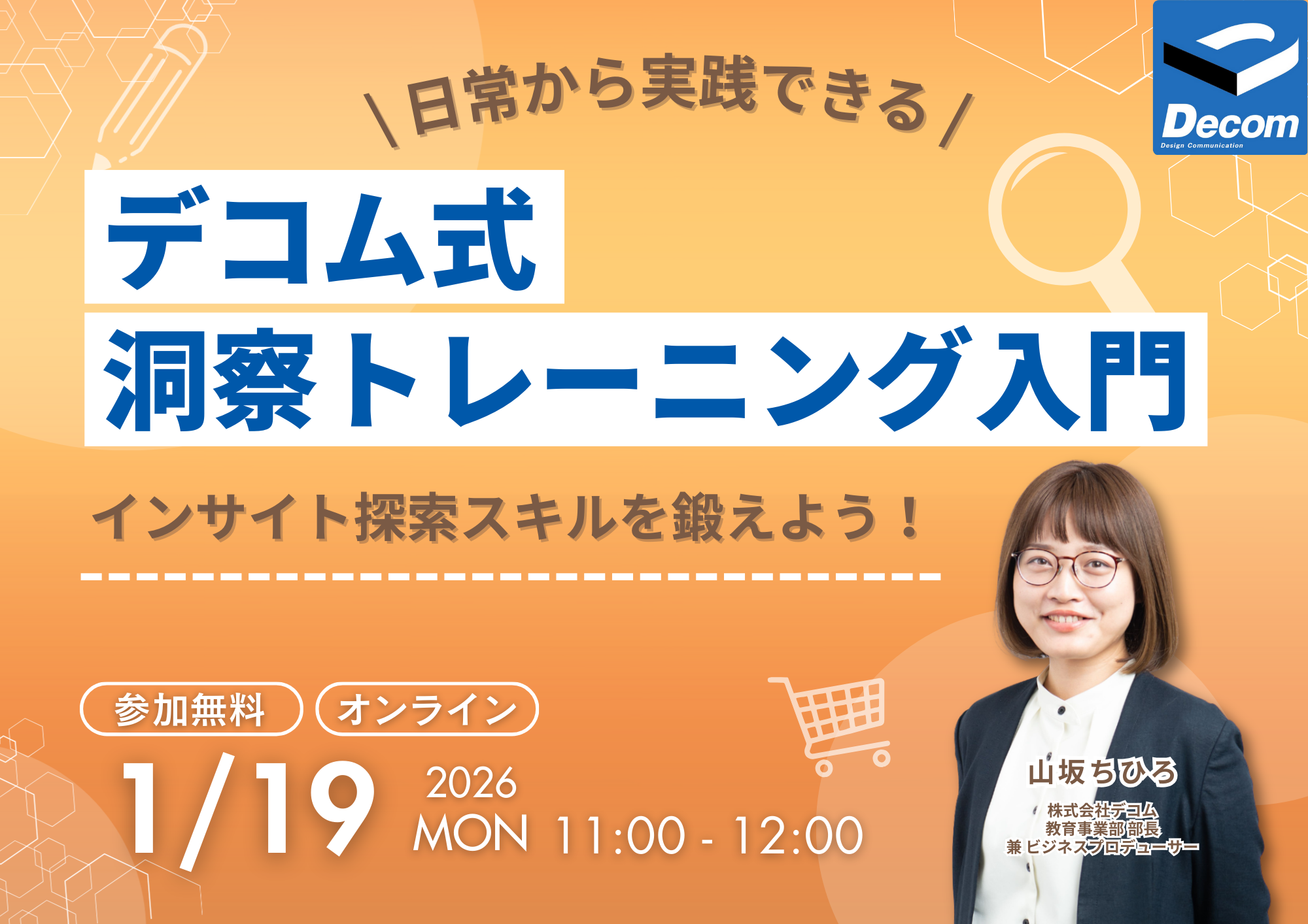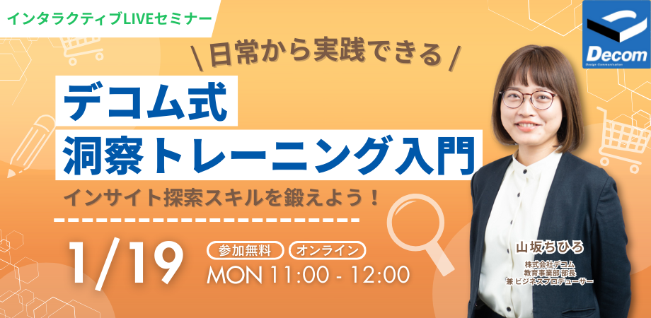 インタラクティブLIVEセミナー|インサイト探索スキルを鍛えよう!日常から実践できるデコム式 洞察トレーニング入門 | 株式会社デコム