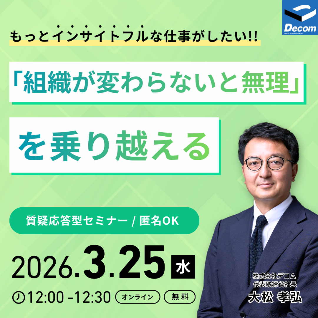 <ランチタイム30分で学べる新セミナー>市場の変化を生活者目線で見抜く/組織がブレずに成果を上げ続ける秘訣!